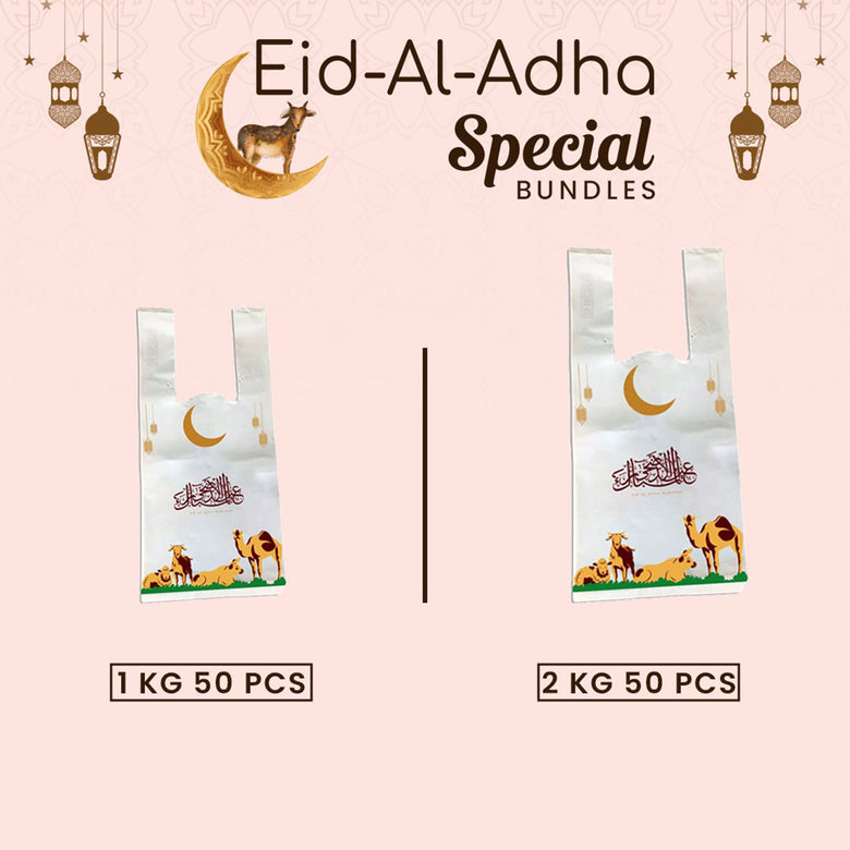 Get ready for a hassle-free Bakra Eid meat distribution with our premium quality plastic bags! Designed to keep your meat fresh and hygienic, our bags come in various sizes and are easy to carry. Made from eco-friendly and recyclable material, our bags are a responsible choice for the environment. Order now and enjoy a stress-free meat distribution experience