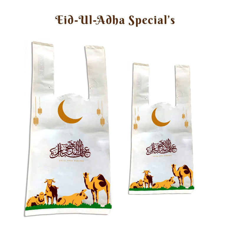 Get ready for a hassle-free Bakra Eid meat distribution with our premium quality plastic bags! Designed to keep your meat fresh and hygienic, our Meat bags come in various sizes and are easy to carry. Made from eco-friendly and recyclable material, our bags are a responsible choice for the environment. Order now and enjoy a stress-free meat distribution experience