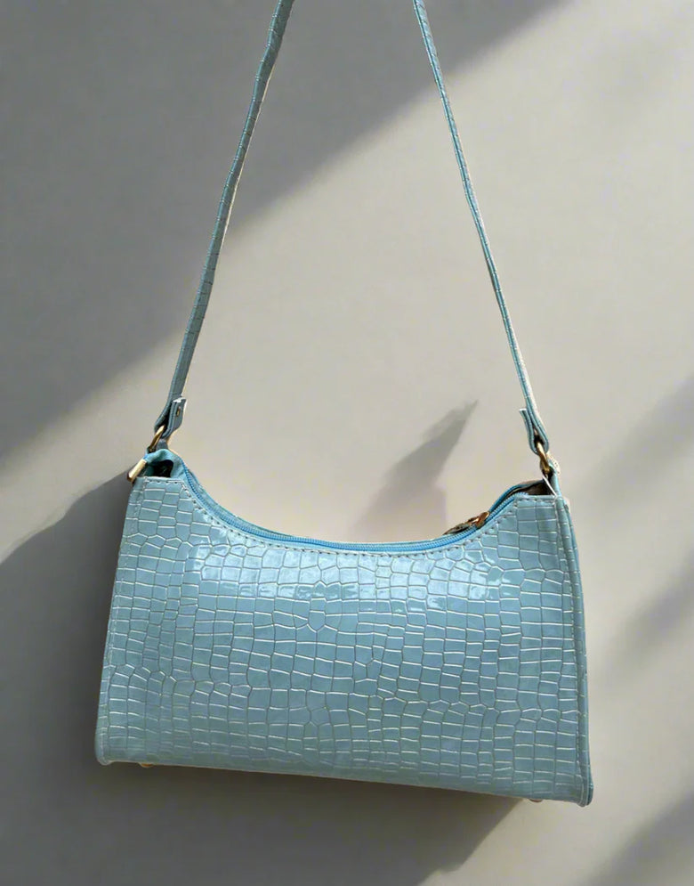 Whether you're dressing up for a night out or keeping it casual, the Ebony Baguette in Sky Blue is the ideal accessory to add a pop of color and style to your ensemble.