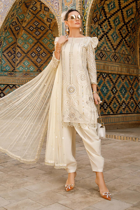 Embroidered Front Center Panel (Lawn) Off-White 1 PieceEmbroidered Front Left Panel (Lawn) Off-White 1 PieceEmbroidered Front Right Panel (Lawn) Off-White 1 PieceDyed Back (Lawn) Off-White 1 PieceEmbroidered Sleeve Left + Right (Lawn) Off-White 1 PairEmbroidered Sleeves Patti (Organza) Off-White 1 PairEmbroidered Front Hem Border (Organza) Off-White 1...