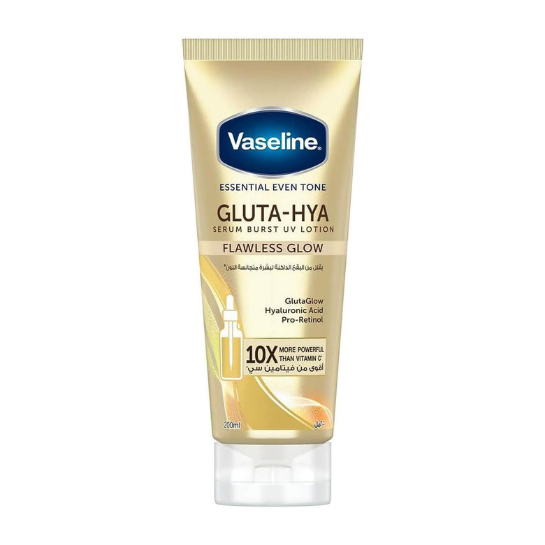 Reveal your skin’s flawless glow with Vaseline Gluta-Hya Flawless Glow Serum-In-Lotion. This revolutionary serum-in-lotion combines Glutathione and Hyaluronic Acid to brighten, hydrate, and even out your skin tone, giving you a radiant, youthful complexion.